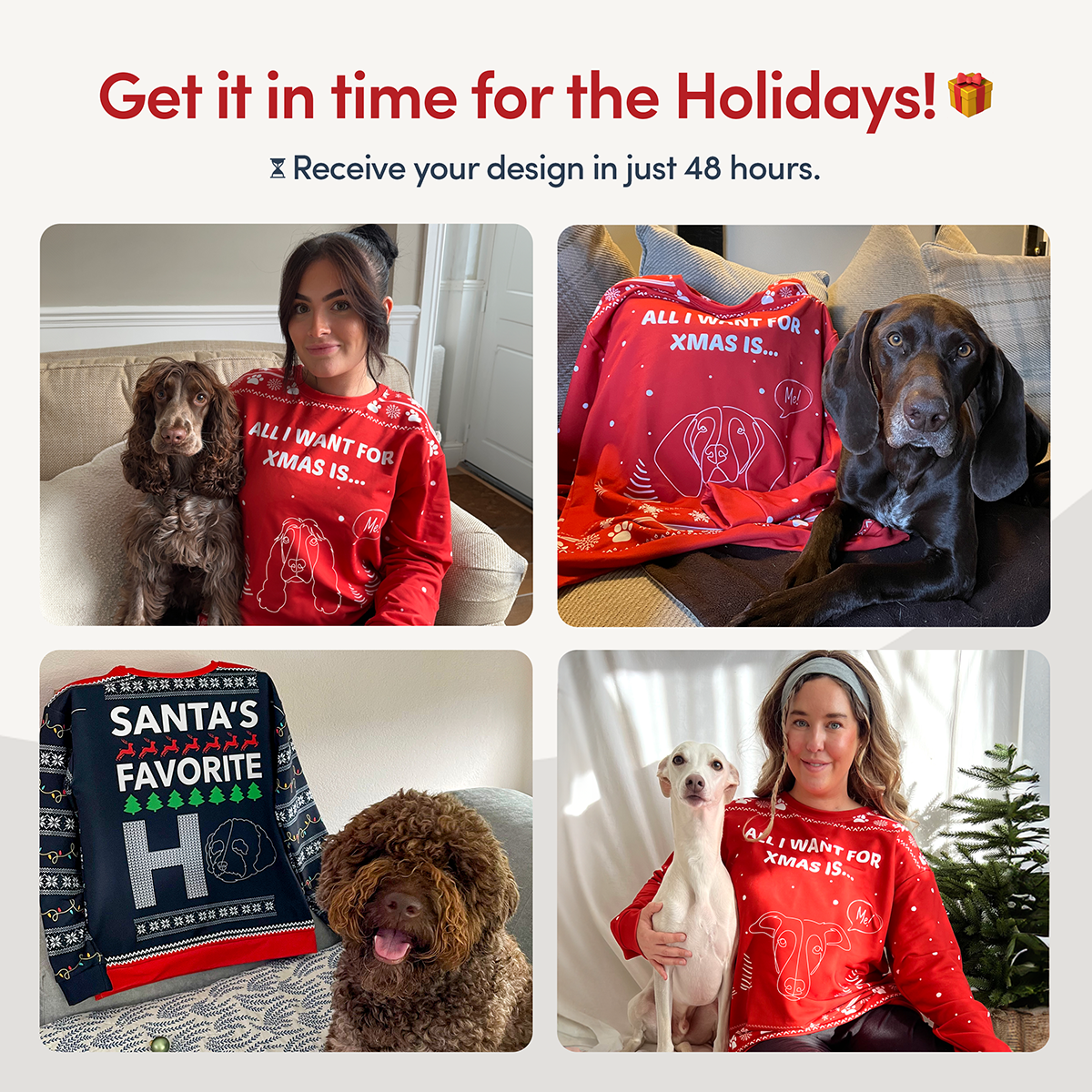 • For Christmas sweaters, ornaments, and kids' products, we can add 1 pet.