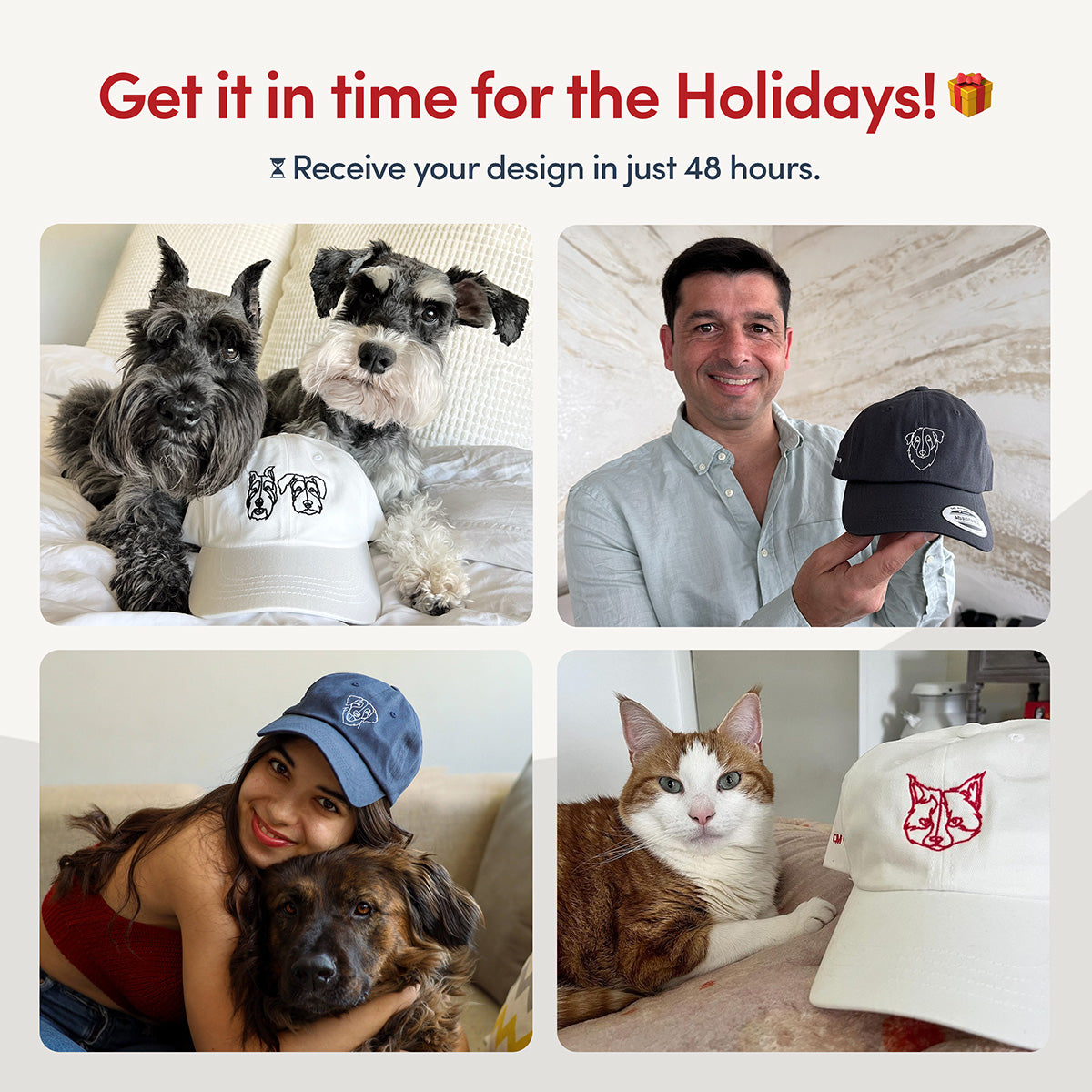 • On mugs and caps, we can include up to 2 pets.