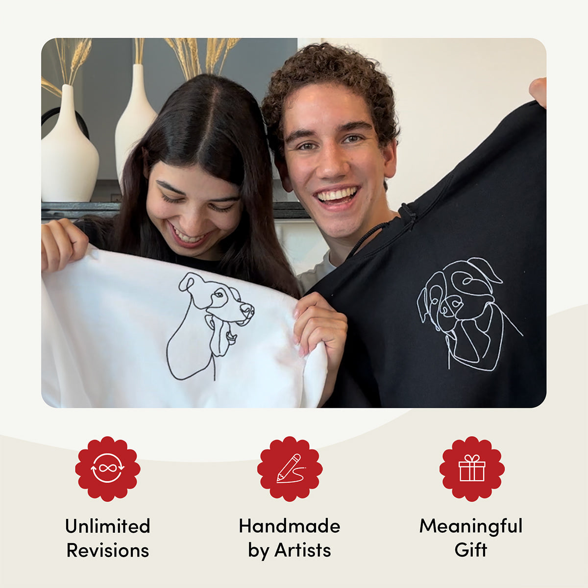 • For hoodies, sweatshirts, and t-shirts, we can feature up to 4 pets.